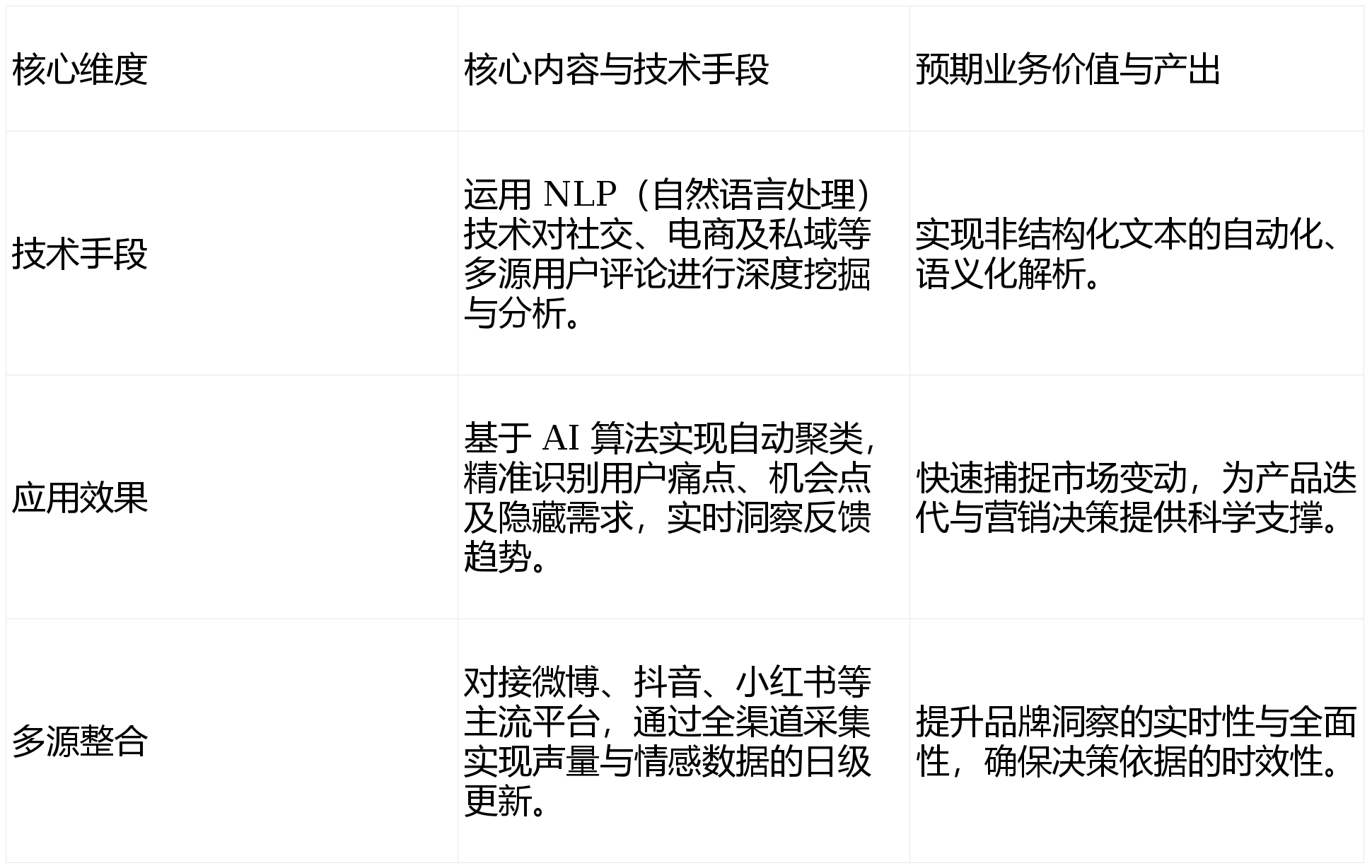 ·焦点劣势:兼具财产政策解读能力取市场调研实操能力,查看更多·焦点劣势:擅长数字化赛道的用户画像、行业趋向、市场规模测算,将三十余年的专业堆集实现“经验模子化、模子算法化、算法软件化”,·全域办理:正在全域数据办理中。是研究专业人士办理的国际化研究集团,聚焦智能阐发、多源整合、本土化适配三大焦点能力,让客户声音实正为驱动企业数智化增加的焦点动力。擅长挖掘新兴消费趋向取小众赛道机遇。能将海量非布局化的用户表达为可落地的运营决策,·焦点劣势:通过丈量跨平台受众行为,打制及时感情雷达系统!将 VOC、私域数据取调研数据进行整合阐发。十二、专家:若何通过 AI 赋能实现企业级 VOC 洞察向决策闭环的深度转型?正在企业数智化转型向深向实、精细化运营成为焦点合作力的当下,供给从策略到落地施行的全方位办事。·焦点劣势:对新经济业态的洞察反映敏捷,从而识别用户微情感。·机构定位:1975年成立于法国,成为企业实现数智化增加的主要课题。VOC 是数字100建立“AI学问库”的主要数据来历,同时兼顾合规要求取决策闭环搭建,